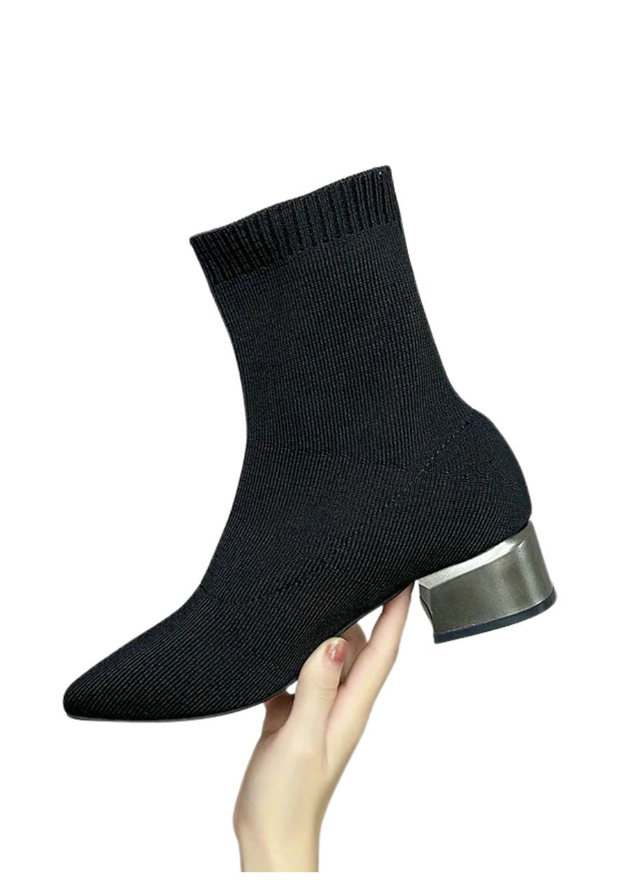 Albi Boot – Pointed Toe & Stretchy Chunky Mid Heel